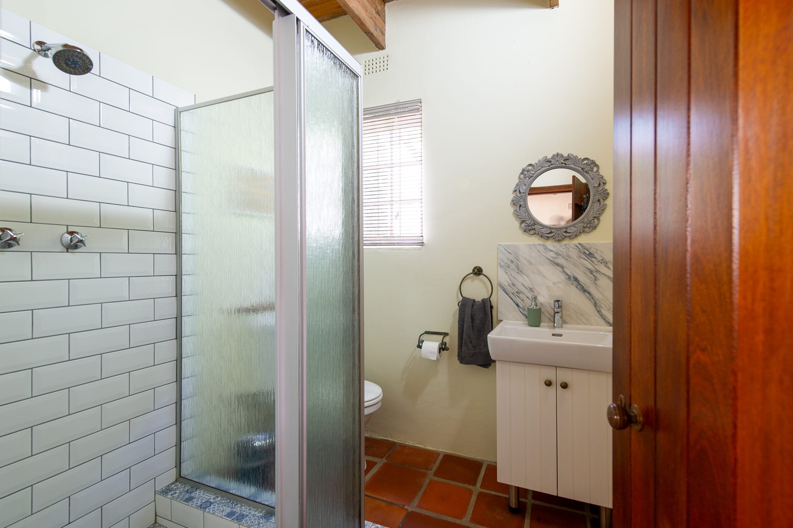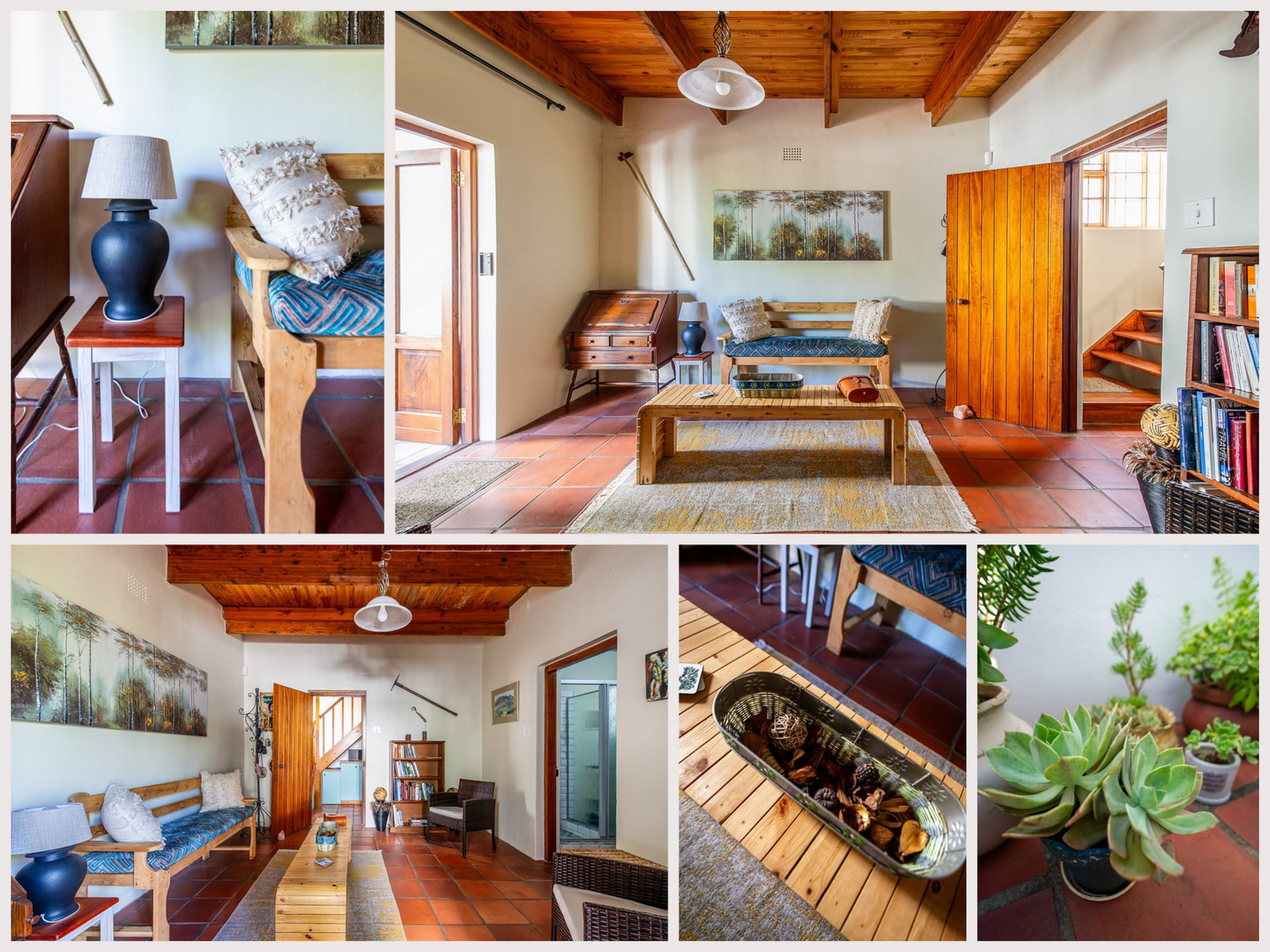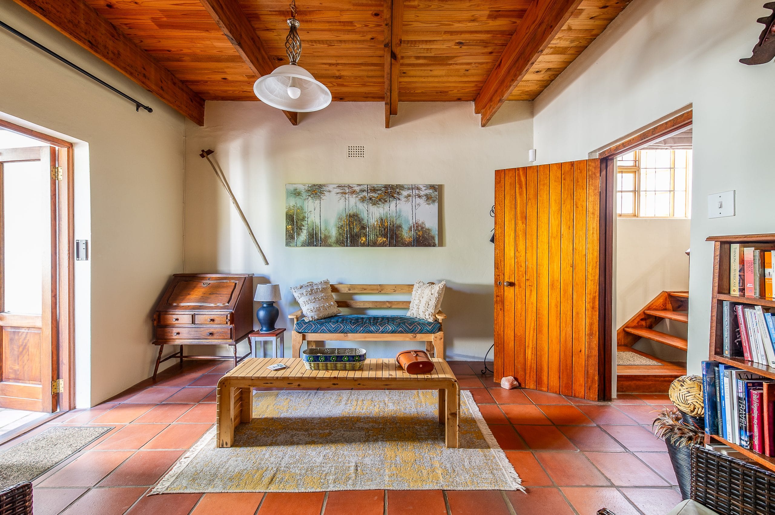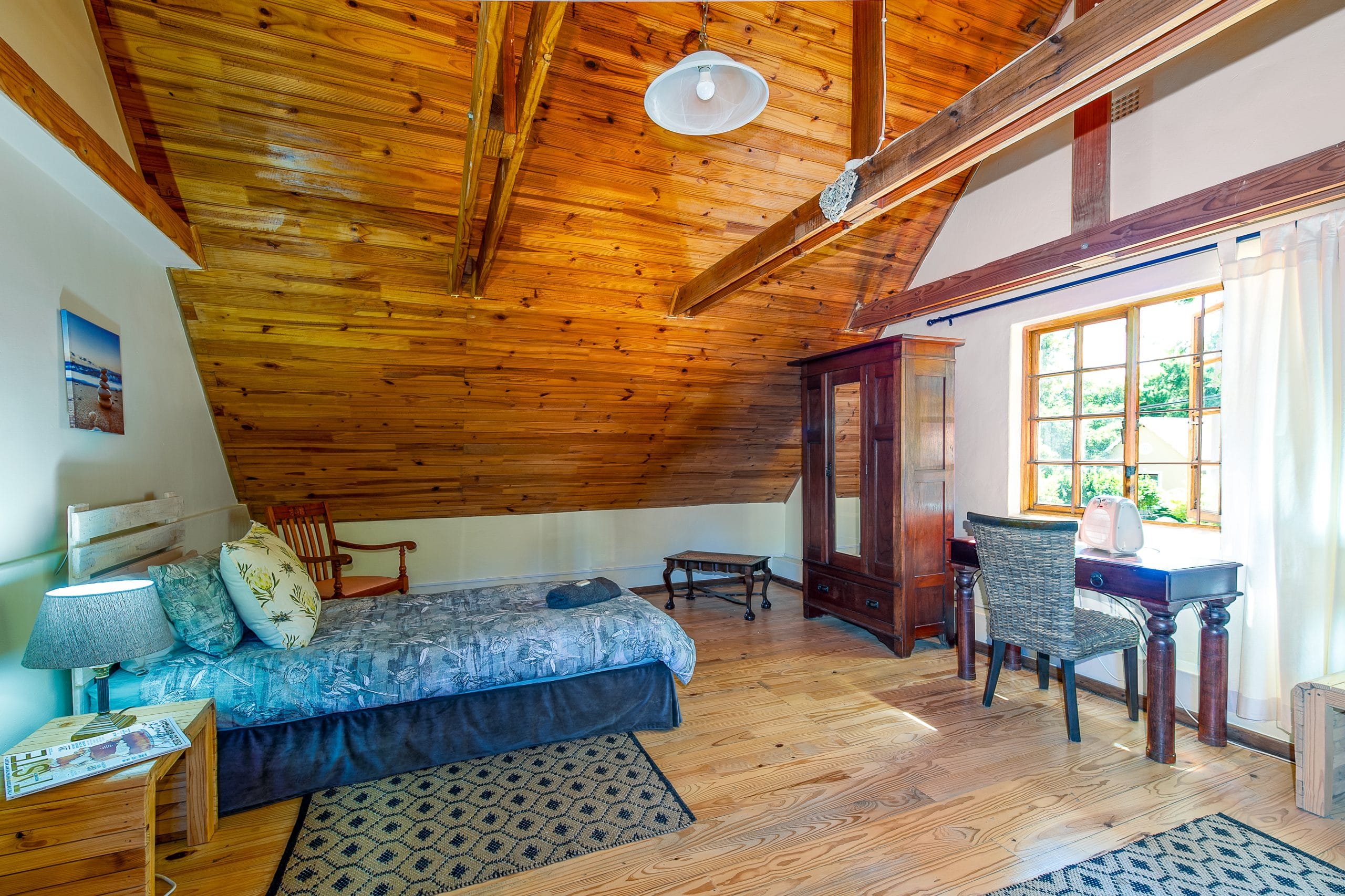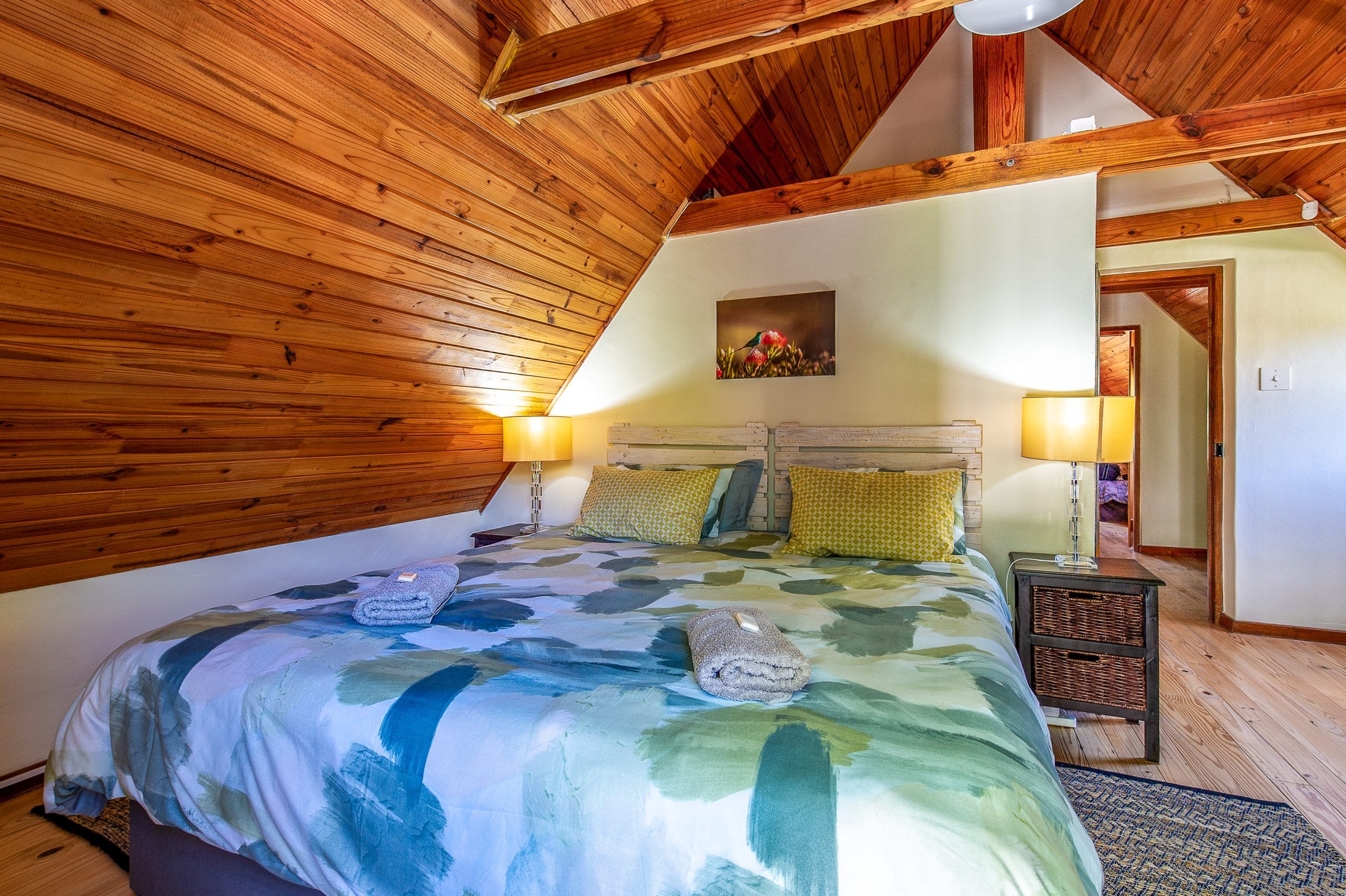 The Cottage has two large bedrooms upstairs, the garden facing bedroom has a deck where guests can enjoy early morning tea / coffee or sundowners with views of the surrounding mountains and garden.