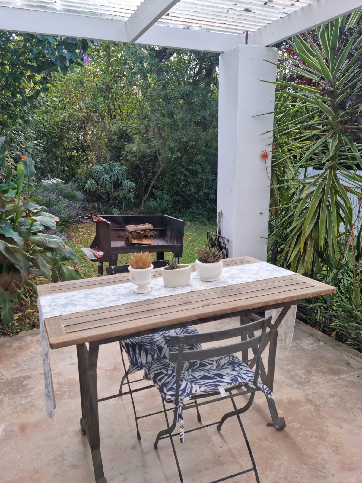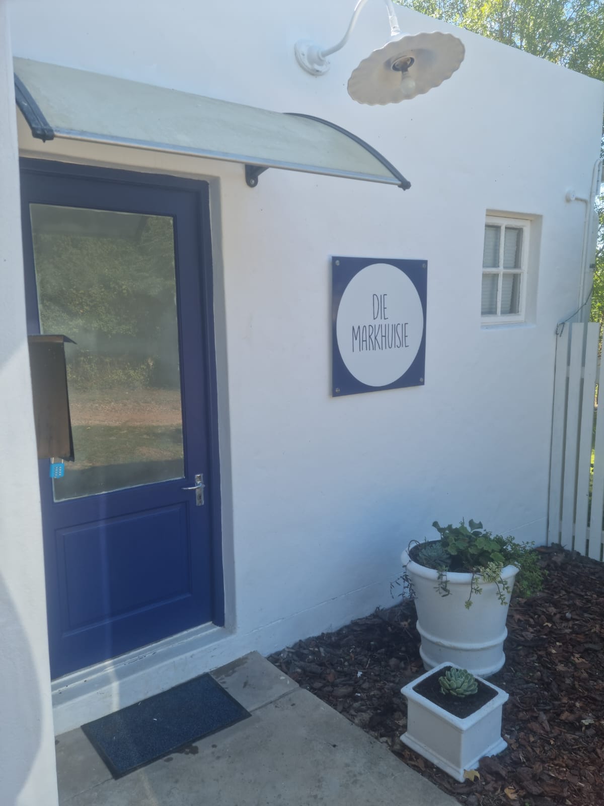 Die Markhuisie is a freestanding cottage consist of a kitchen, bedroom with king size bed that can be converted into 2 singles. Kitchen with everything you need. Bathroom with shower and toilet. A sitting area with fireplace and to watch your Dstv. Mobile braai for outside. Free private parking on site with alarm system in cottage.