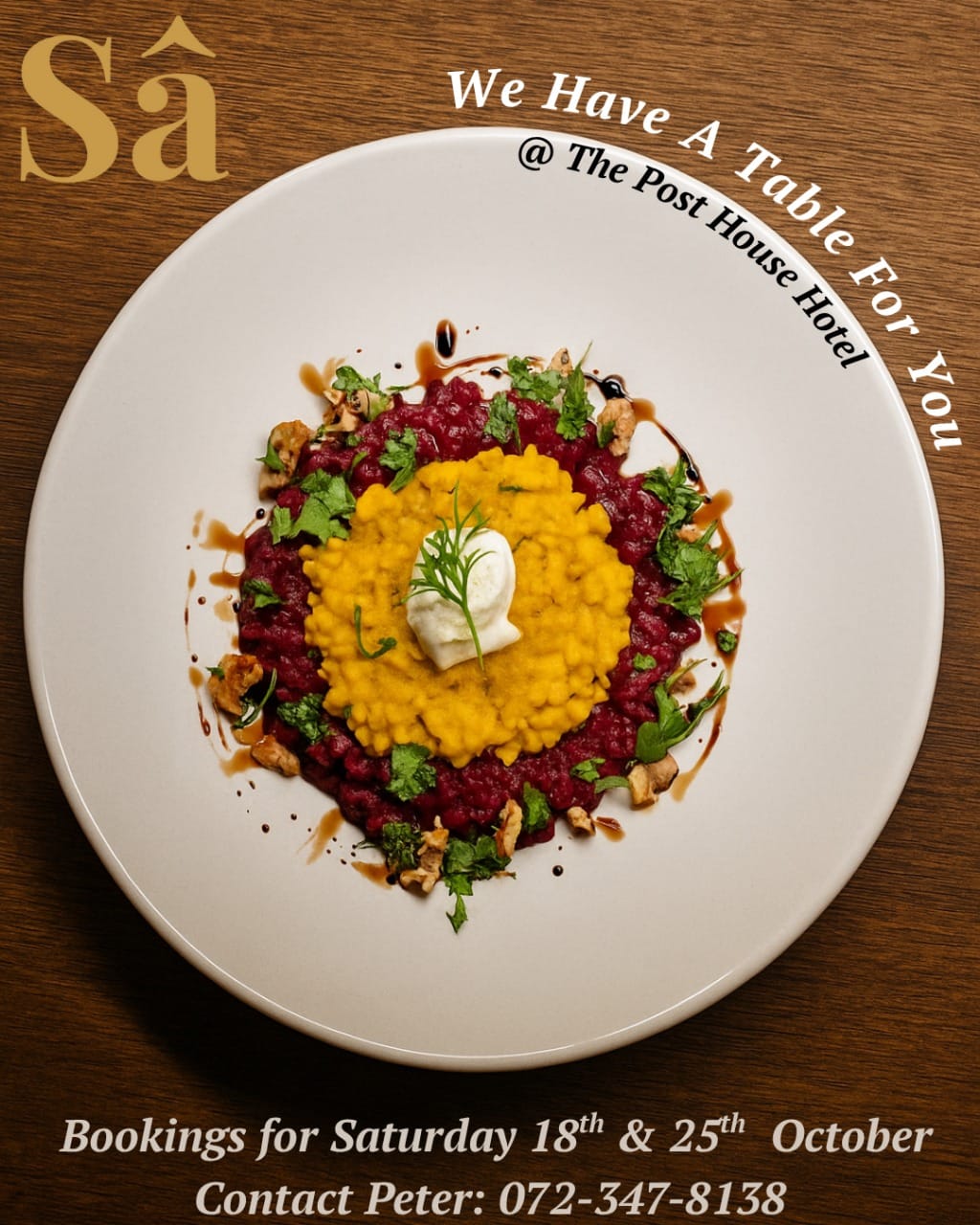 Contact Peter for menu and bookings
